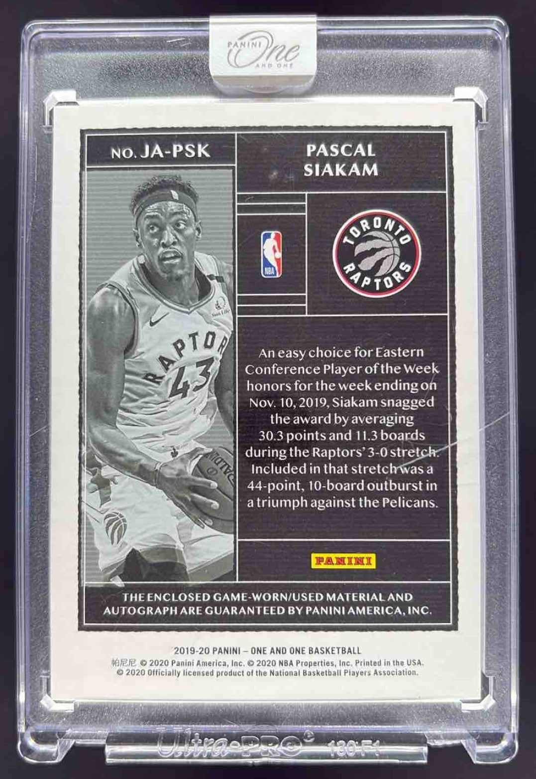 2019-20 Panini One and One Jersey Autographs #1 Pascal Siakam Auto /99