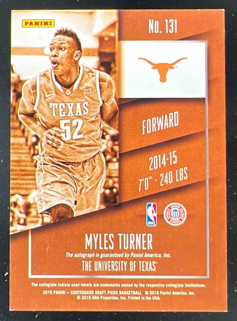 2015-16 Panini Contenders Draft Picks #131a Myles Turner RC Auto