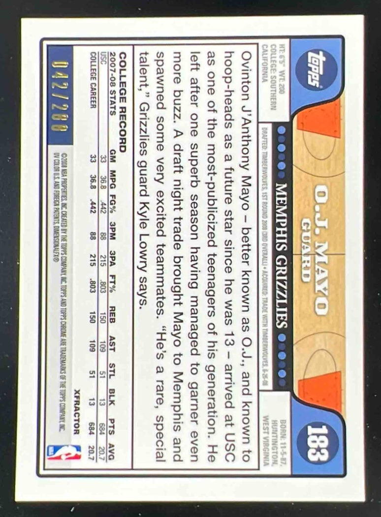 2008-09 Topps Chrome X Fractors #183 O.J. Mayo RC /288
