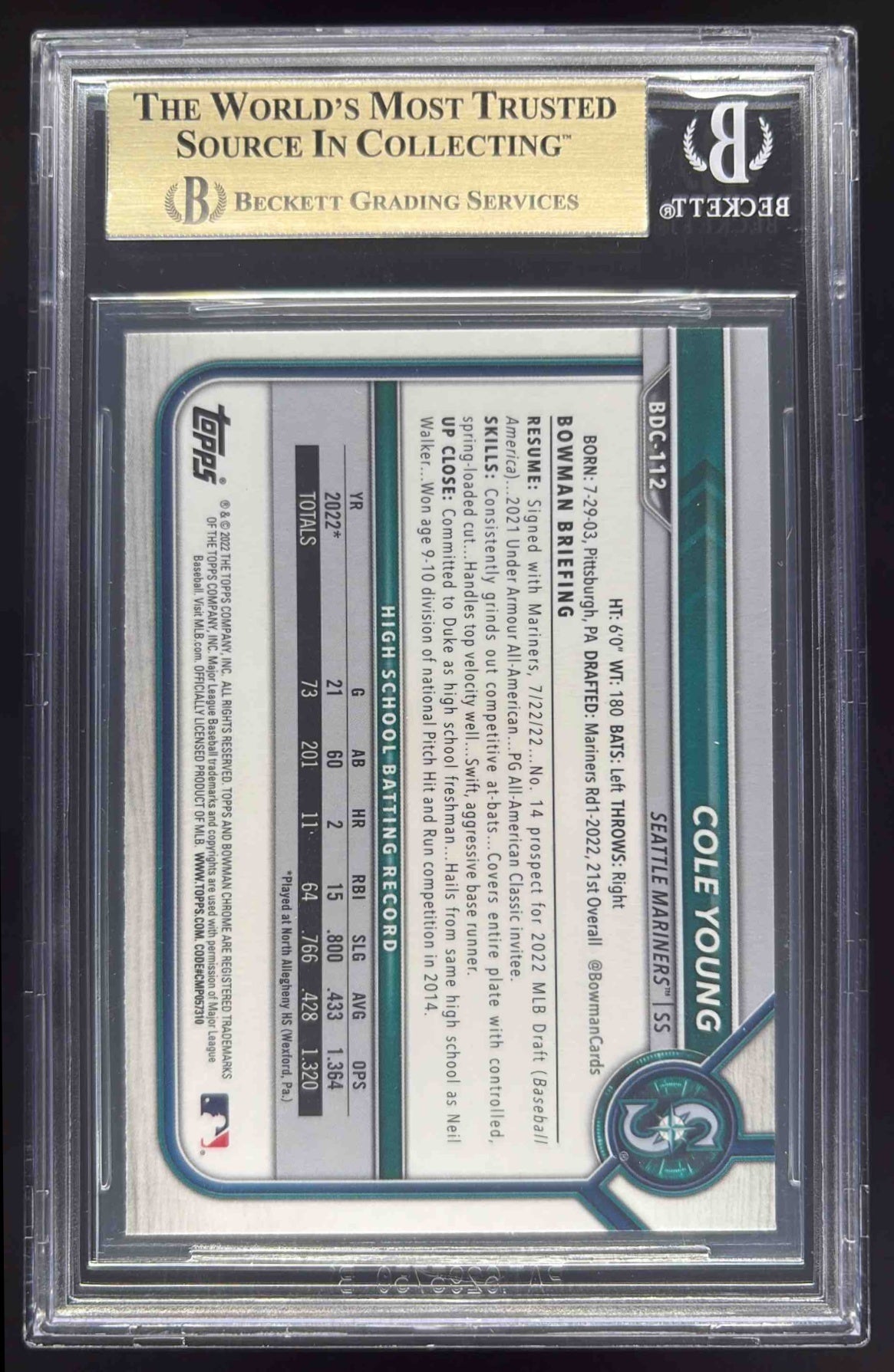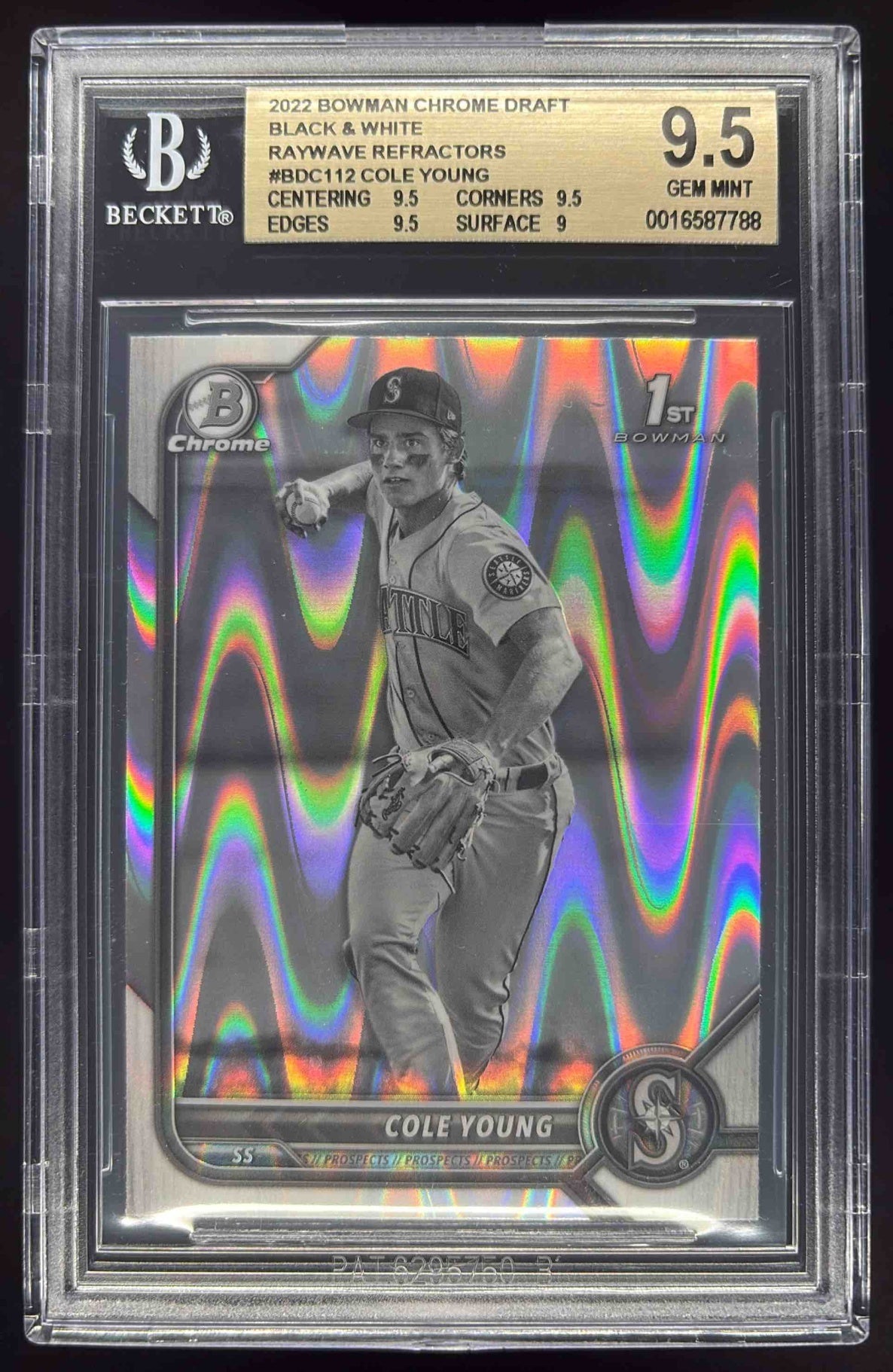 2022 Bowman Draft Chrome Black & White RayWave #BDC-112 Cole Young RC BGS 9.5