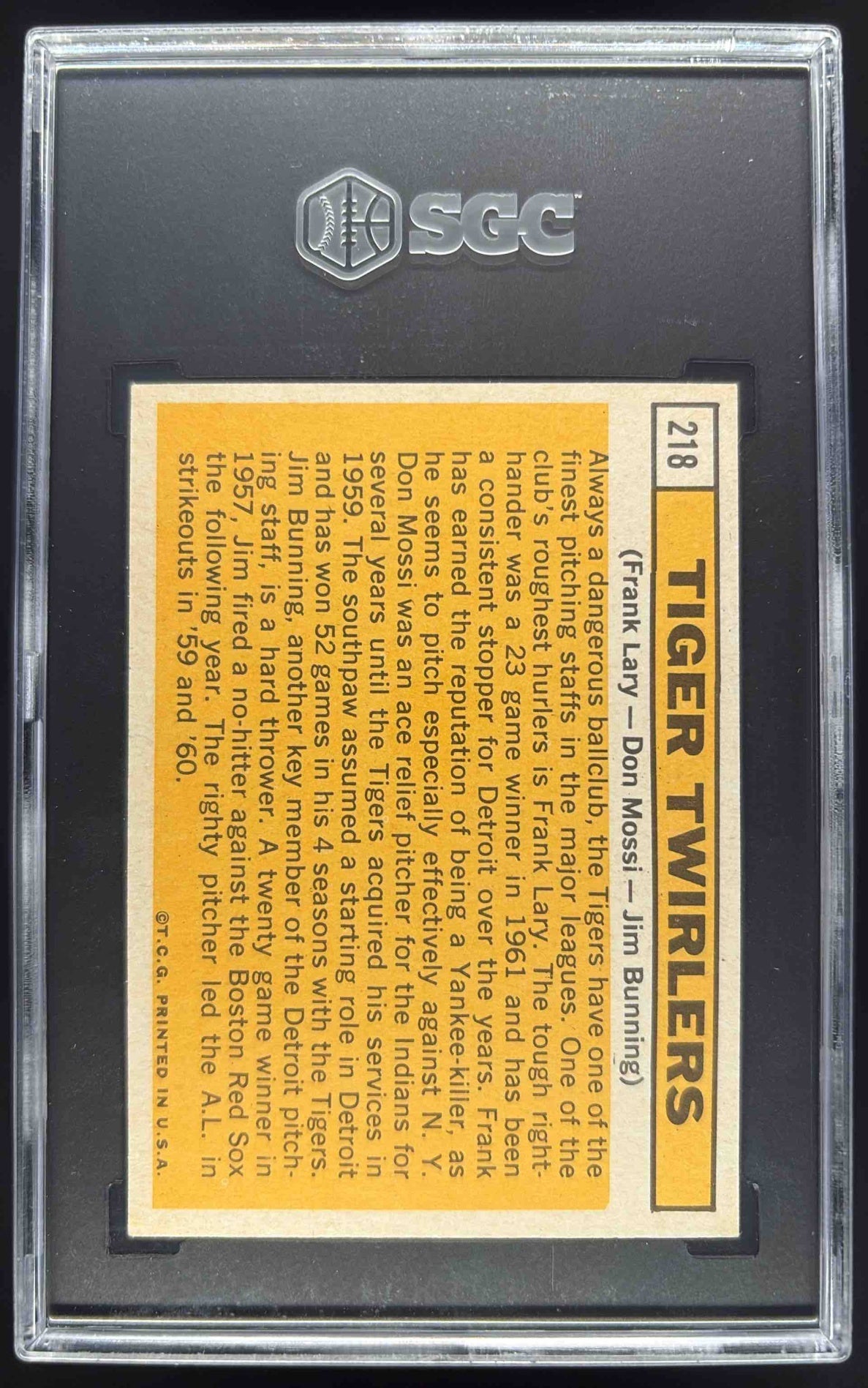 1963 Topps #218 Tiger Twirlers Jim Bunning Frank Lary Don Mossi SGC 7