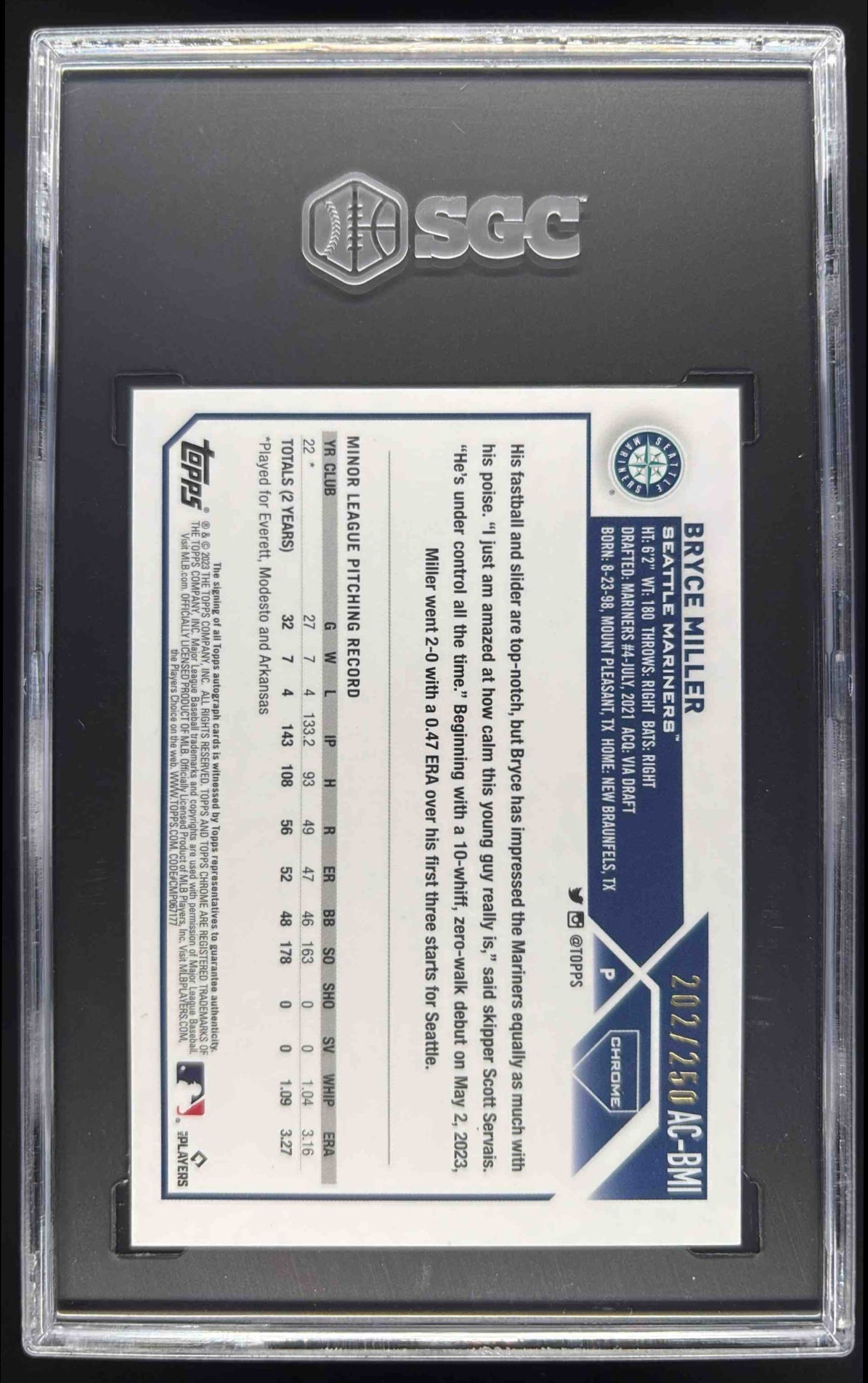 2023 Topps Chrome Update Purple Refractor #ACBMI Bryce Miller RC Auto /250 SGC 9