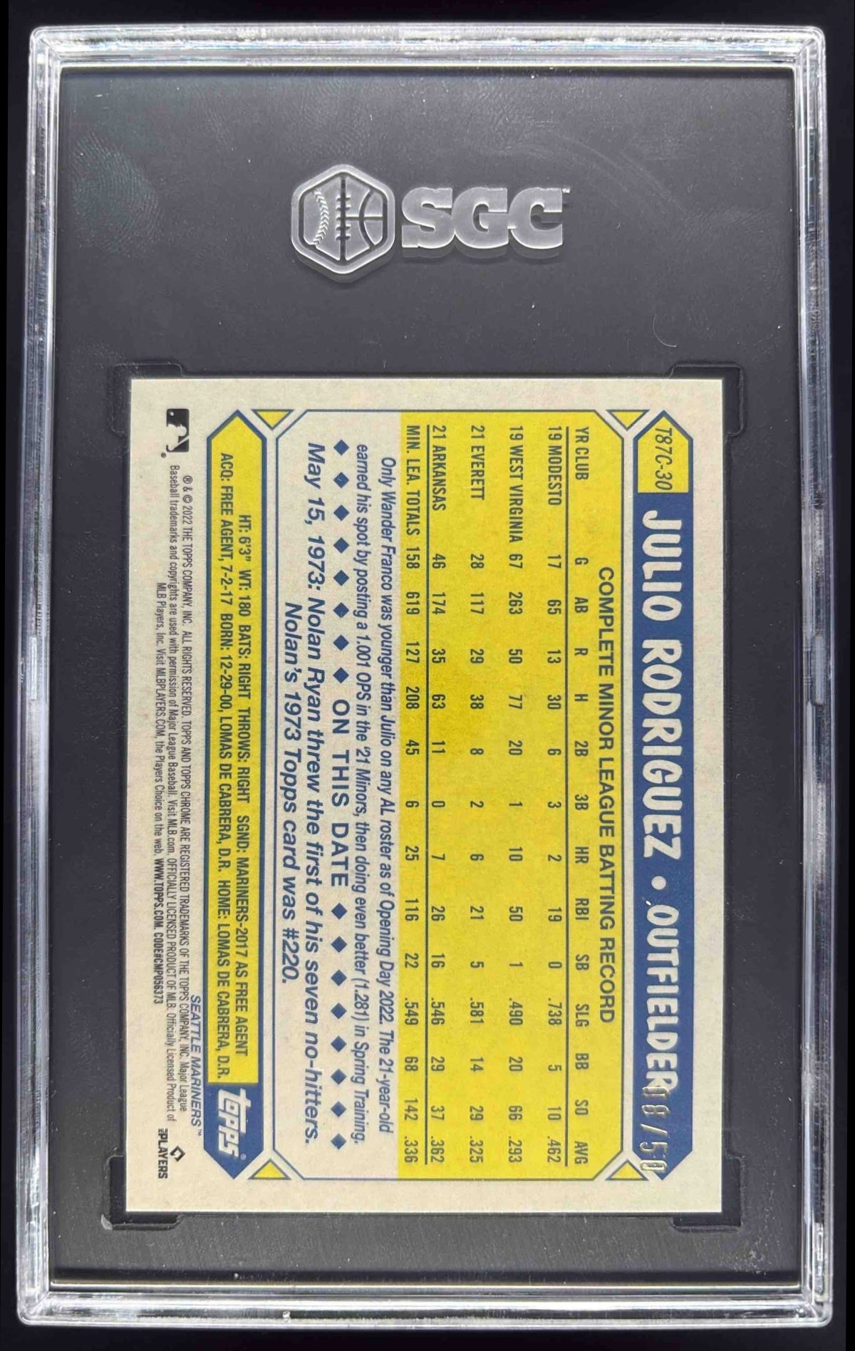 2022 Topps Update 1987 Chrome Silver Packs Gold Julio Rodriguez RC /50 SGC 9.5