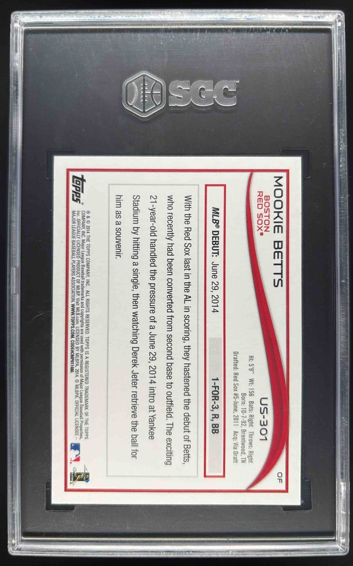 2014 Topps Update #US-301 Mookie Betts RC SGC 10