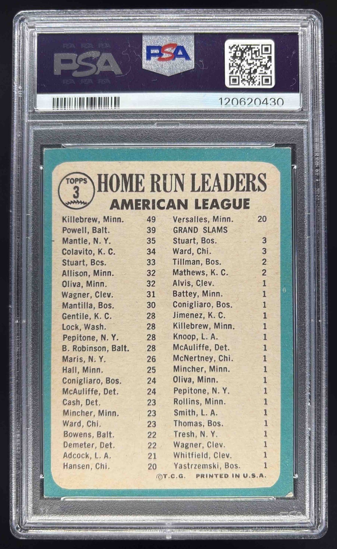 1965 Topps #3 Harmon Killebrew Boog Powell Mickey Mantle PSA 4