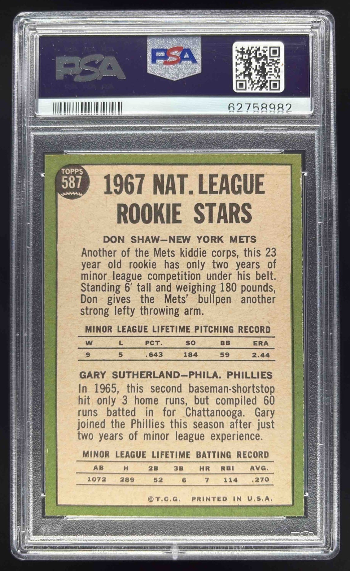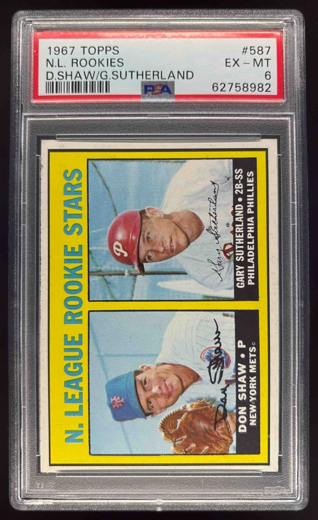 1967 Topps #587 N. League Rookie Stars (Don Shaw Gary Sutherland) RS, RC PSA 6
