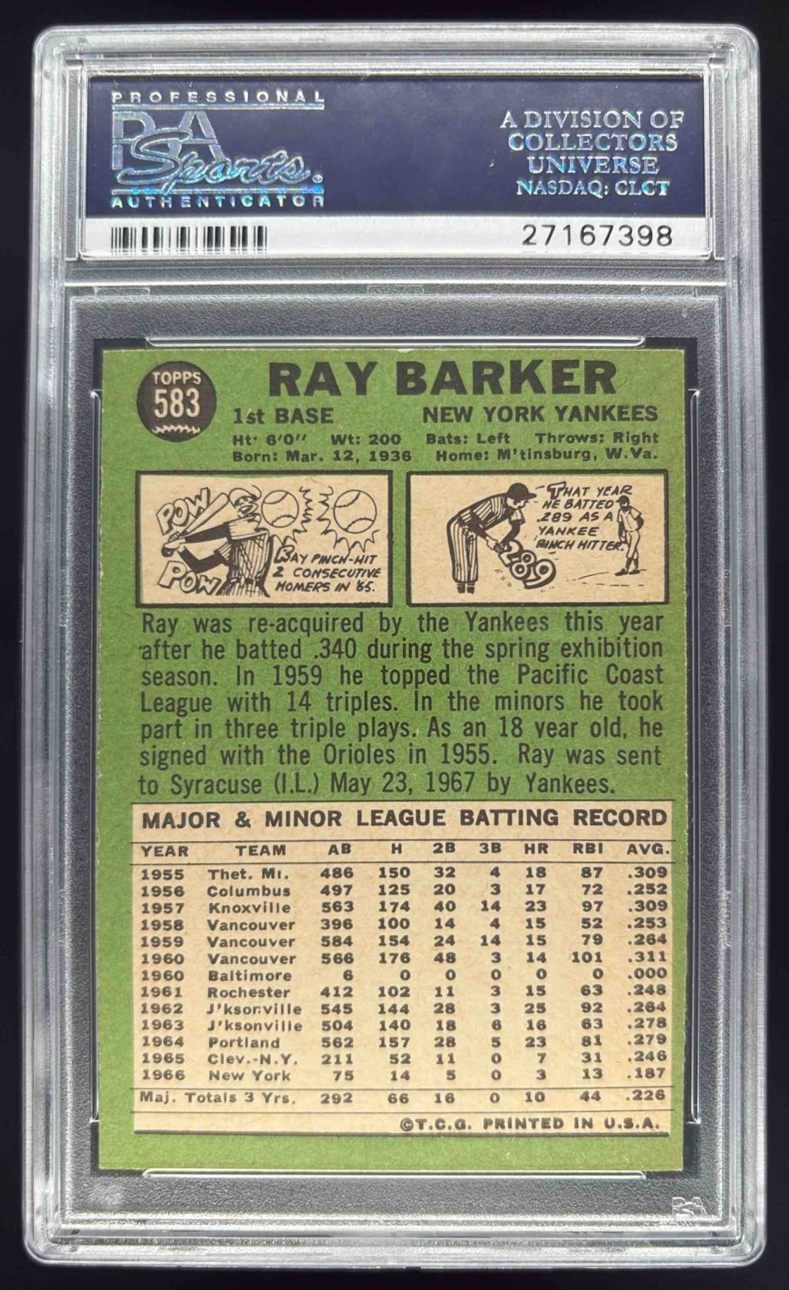 1967 Topps #583 Ray Barker PSA 6