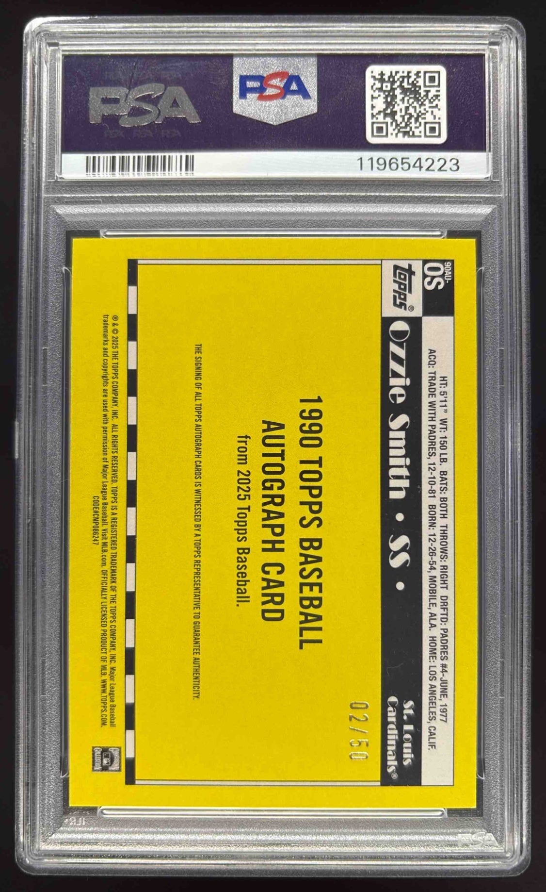 2025 Topps 1990 Baseball Autograph Gold #90AU-OS Ozzie Smith Auto /50 PSA 8