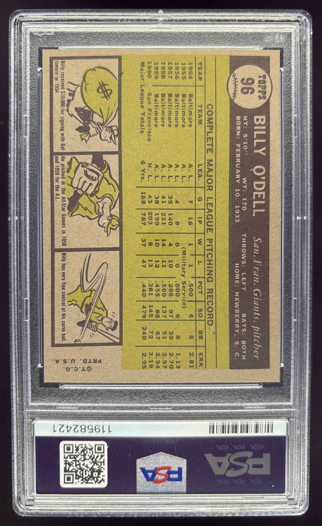 1961 Topps #96 Billy O'Dell PSA 8.5