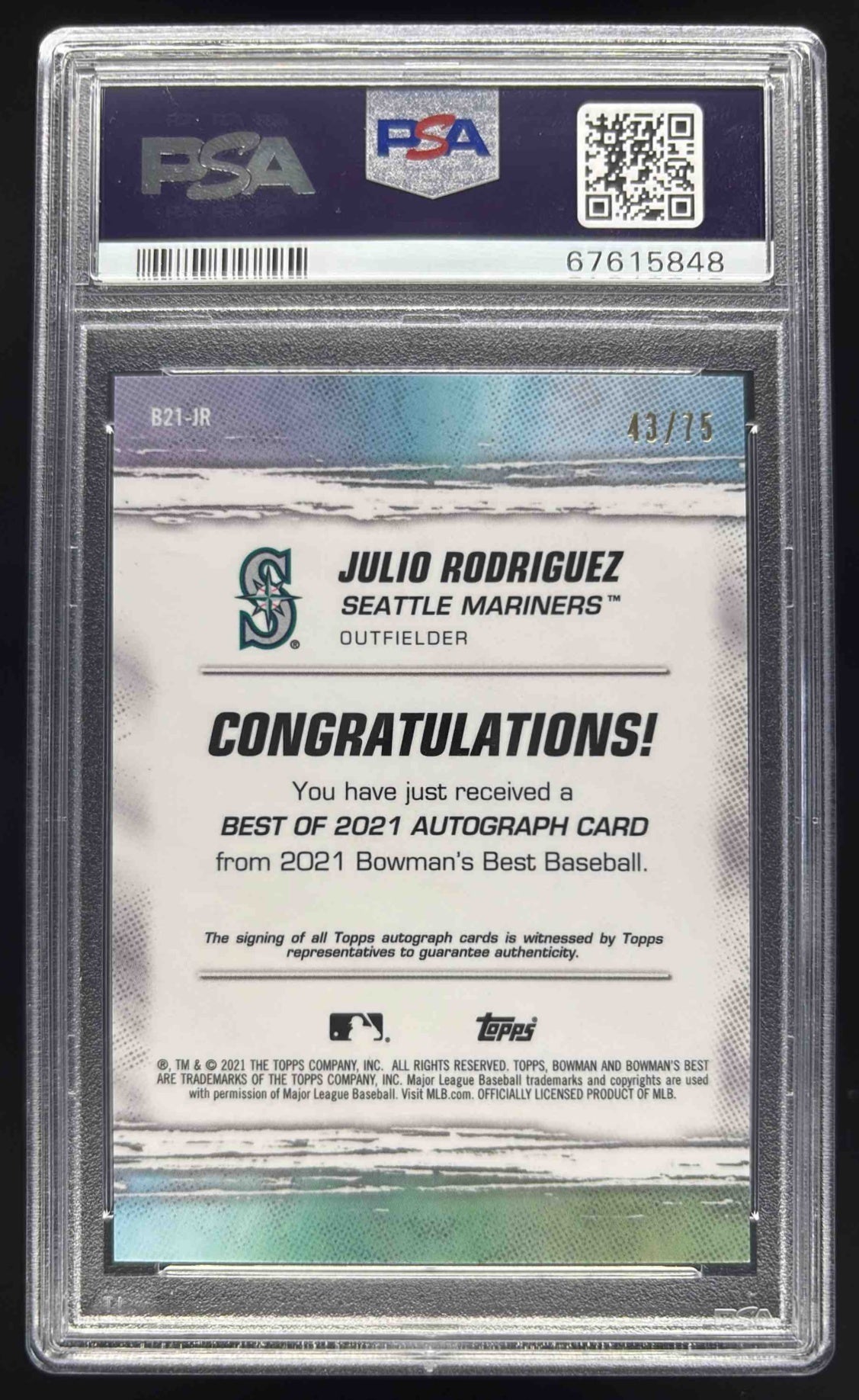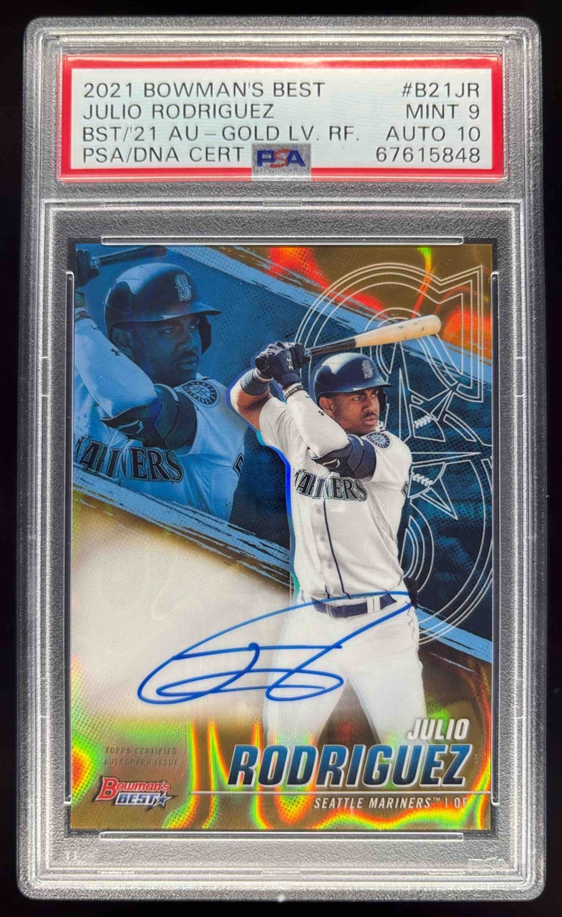 2021 Bowman's Best of 2021 Gold Lava #B21-JR Julio Rodriguez RC Auto /75 PSA 9