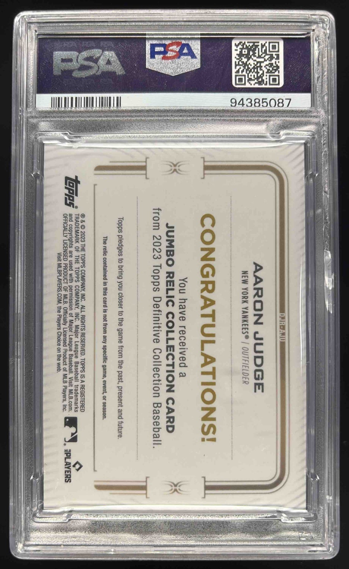 2023 Topps Definitive Jumbo Relic Collection Blue #DJRAJU Aaron Judge /30 PSA 10