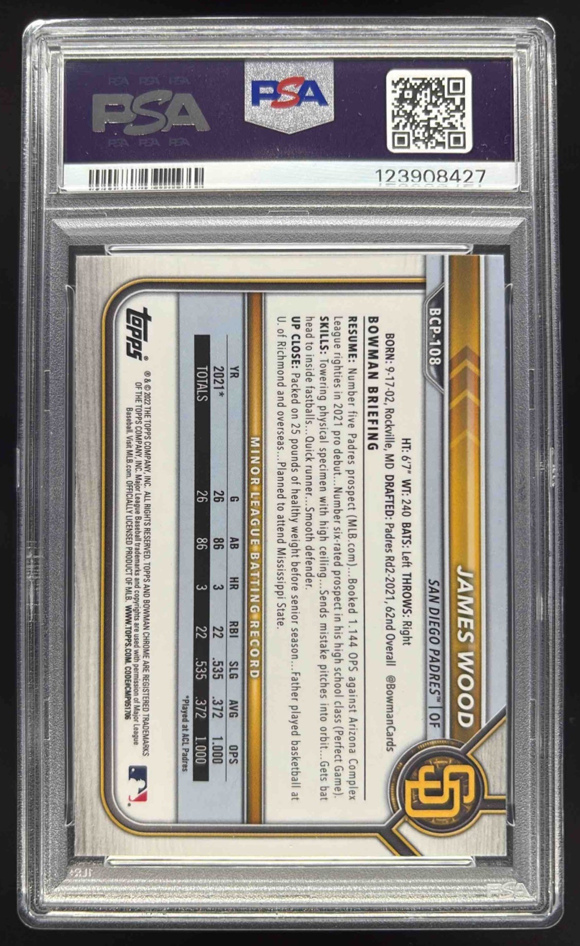 2022 Bowman Chrome Prospects #BCP-108 James Wood PSA 10
