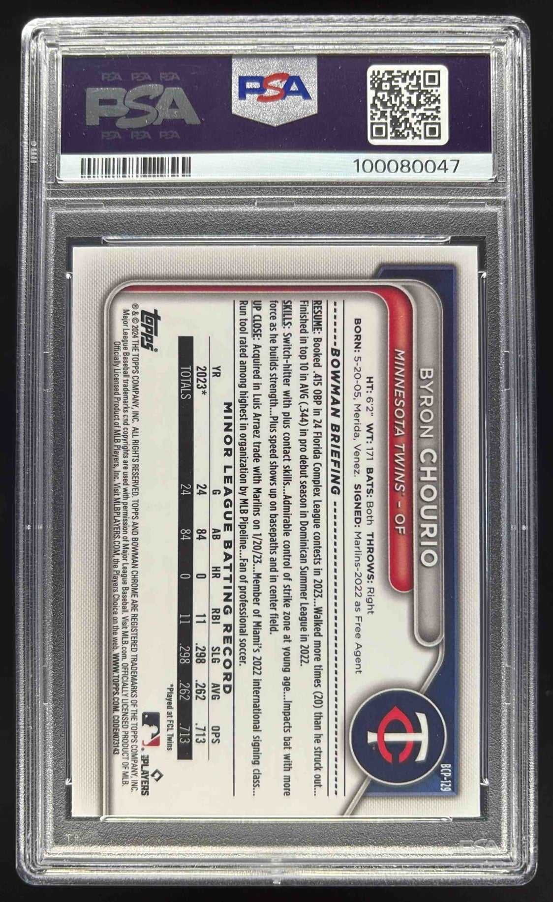 2024 Bowman Chrome Prospects #BCP-129 Byron Chourio RC PSA 10