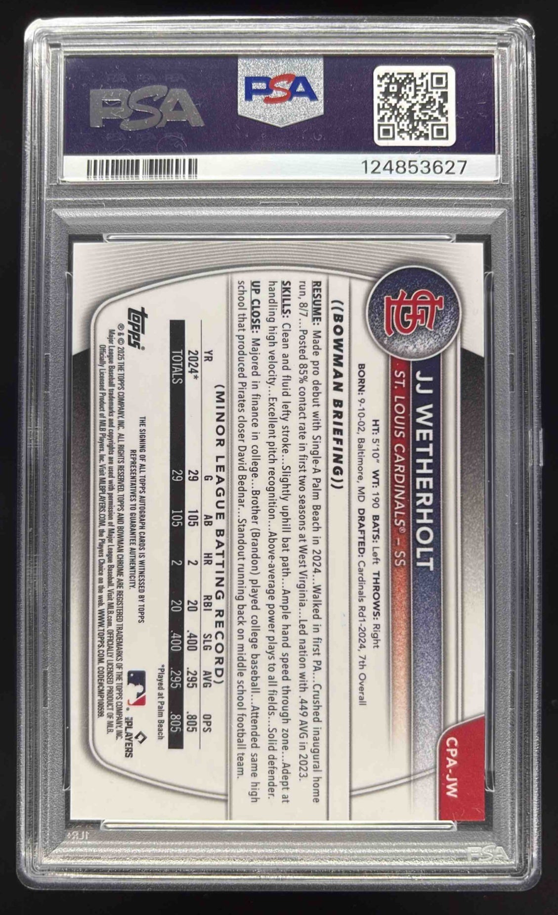 2025 Bowman Chrome Autographs #CPA-JW JJ Wetherholt RC Auto PSA 10
