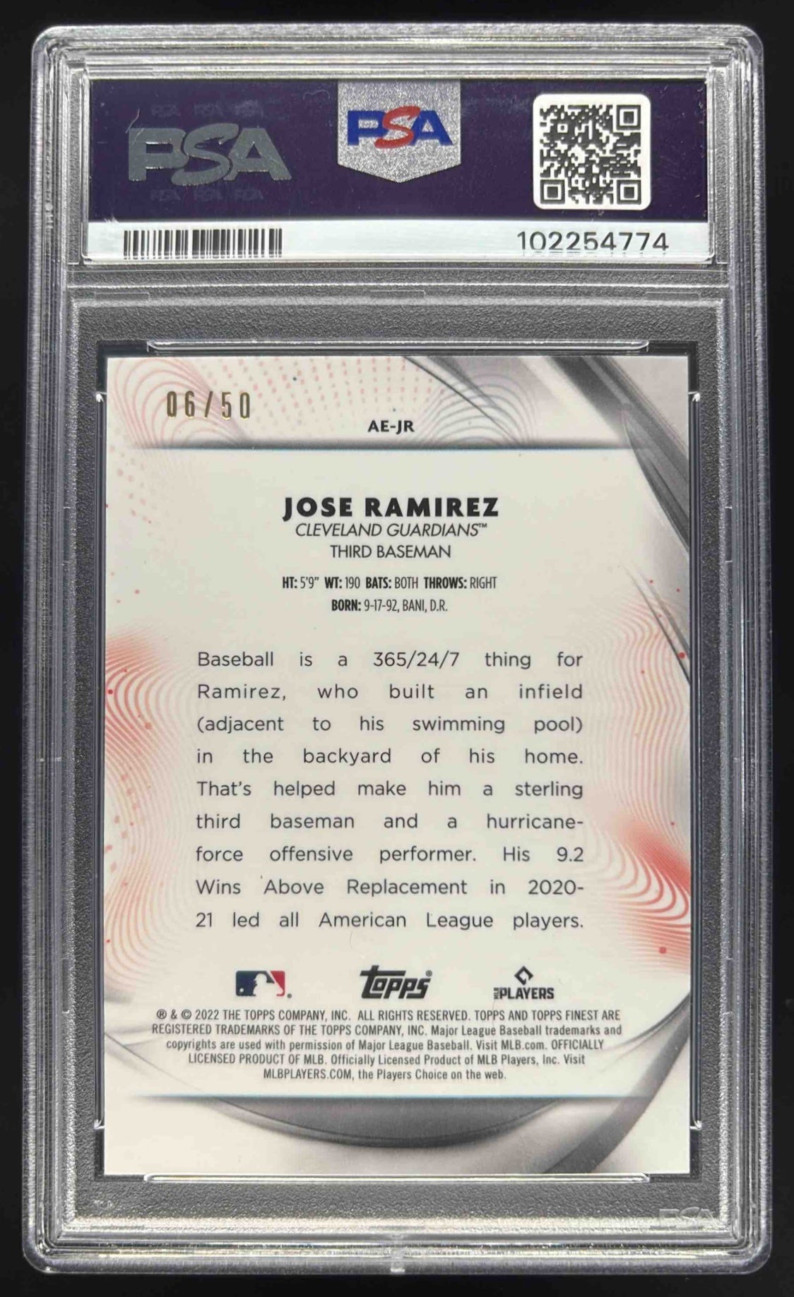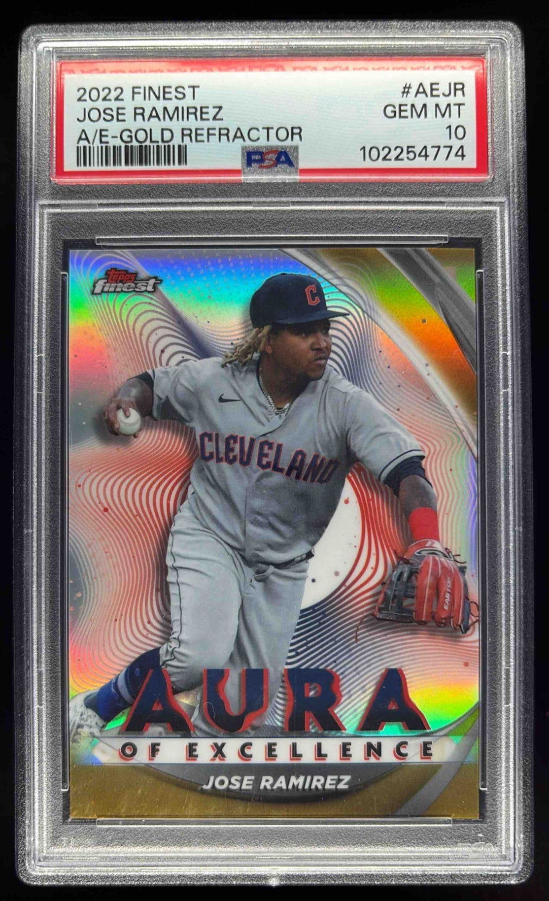 2022 Topps Finest Aura of Excellence Gold Refractor #JR Jose Ramirez /50 PSA 10