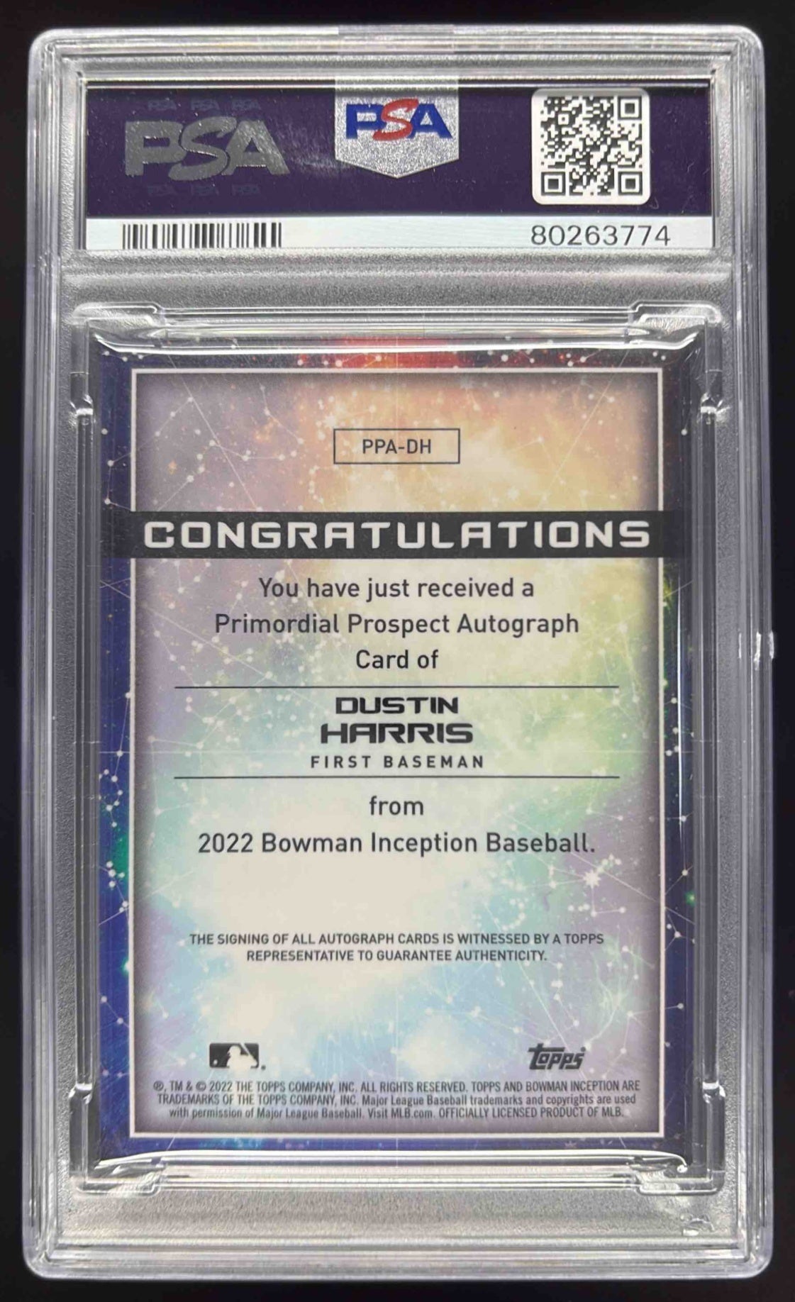 2022 Bowman Inception Primordial Gold Foil #PPA-DH Dustin Harris Auto /50 PSA 10