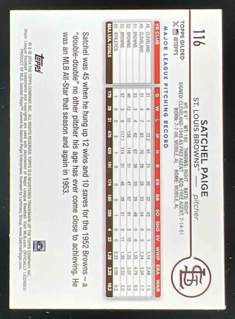 2024 Topps Gilded Collection Gold Wave Refractor #116 Satchel Paige /75