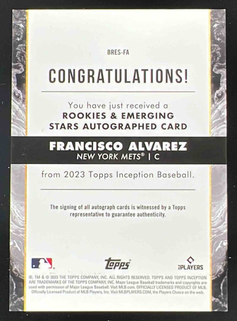2023 Topps Inception Rookie Emerging Stars Magenta Francisco Alvarez RC Auto /99