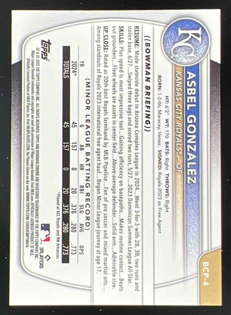 2025 Bowman Chrome Prospects Peanuts Refractor #BCP-4 Asbel Gonzalez RC