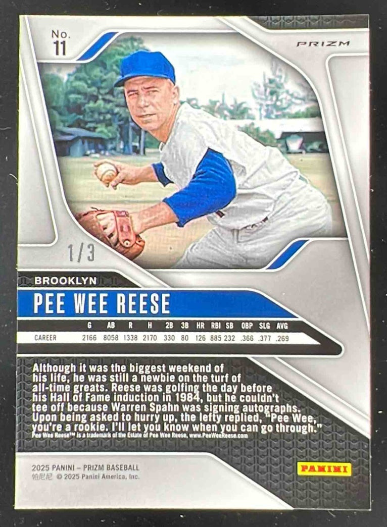 2025 Panini Prizm Prizms Black Gold Shimmer FOTL #11 Pee Wee Reese /3