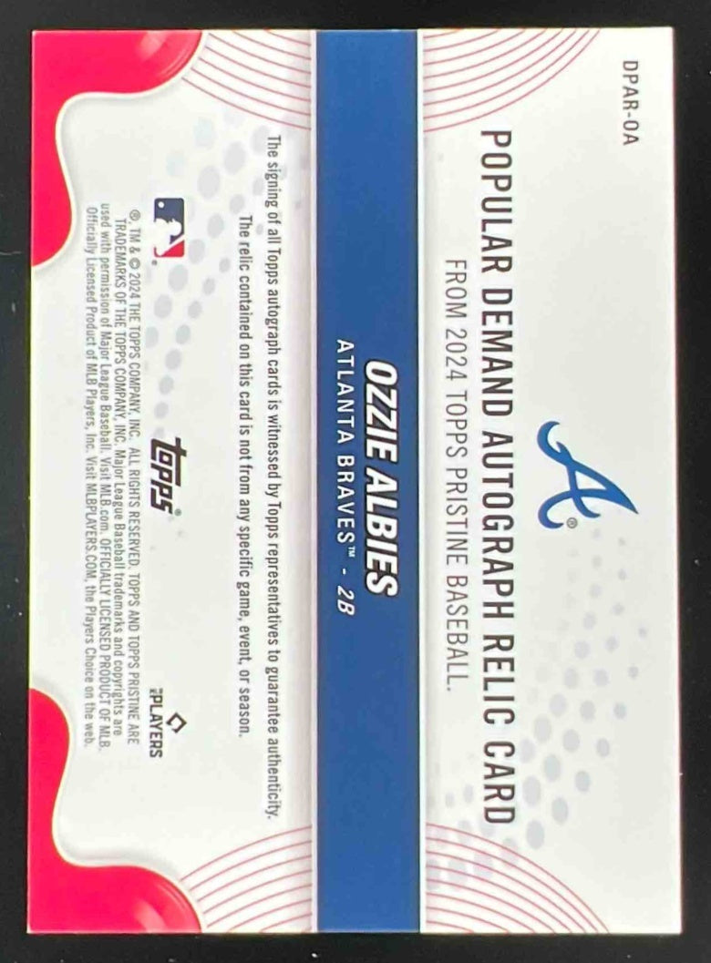 2024 Topps Pristine Popular Demand Relics Orange #DPAR-OA Ozzie Albies Auto /25