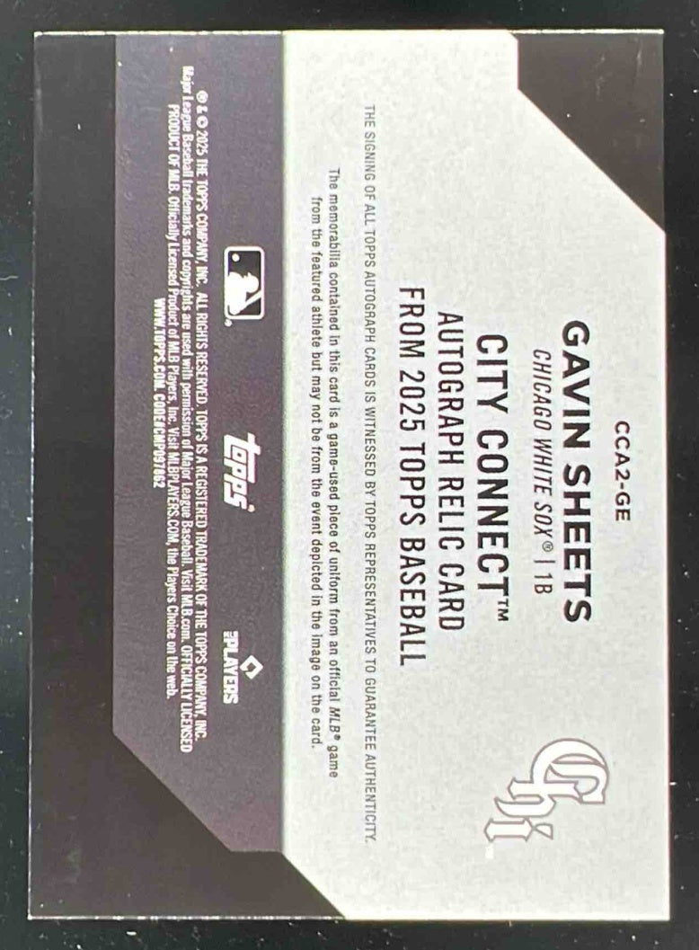 2025 Topps City Connect Swatch Collection Relic Red #CCA2GE Gavin Sheets Auto /5