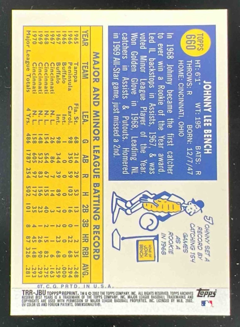 2002 Topps Archives Reserve Uniform Relics #TRR-JBU Johnny Bench