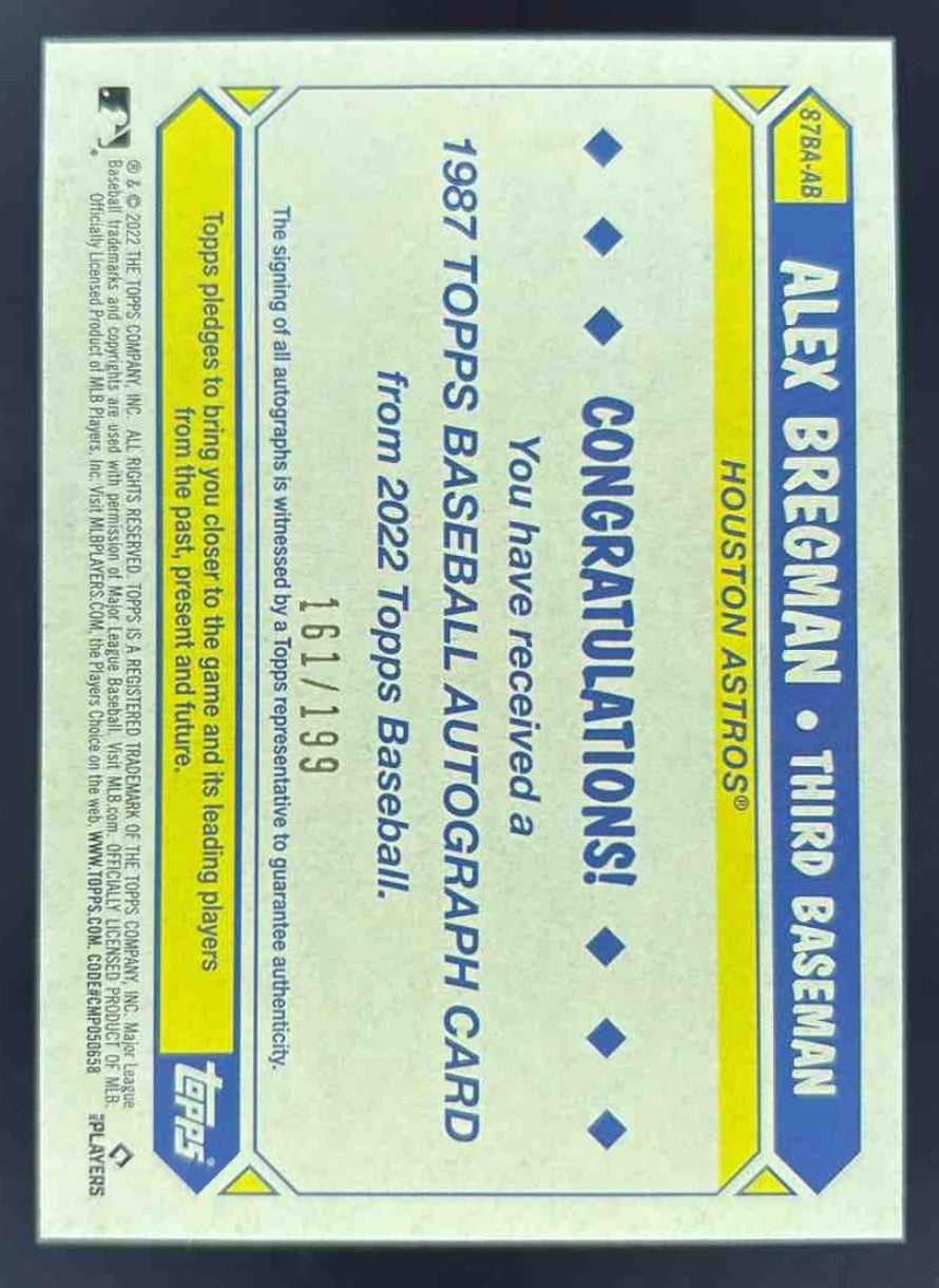 2022 Topps 1987 35th Anniversary Series Two Black #87BAAB Alex Bregman Auto /199