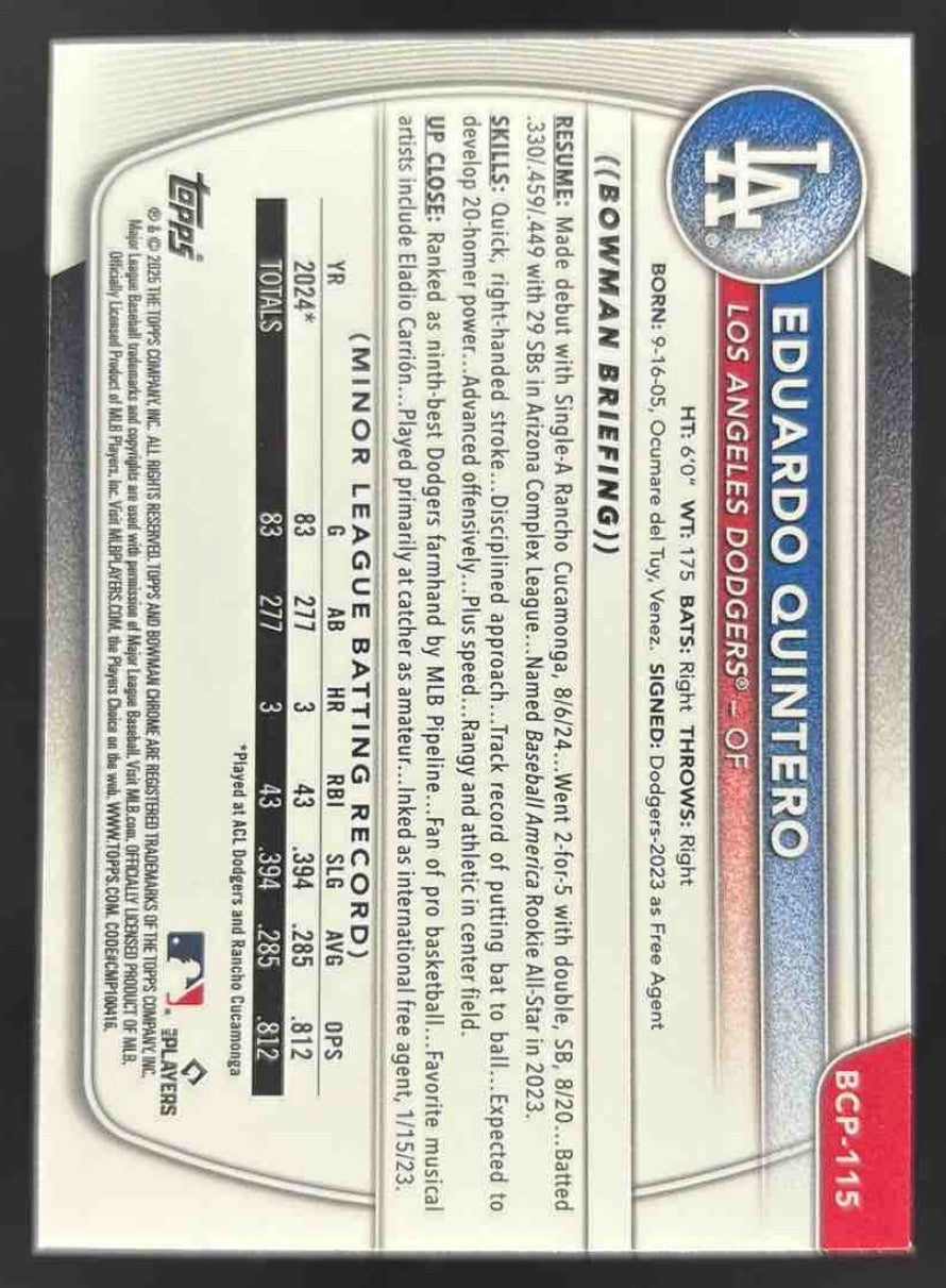 2025 Bowman Chrome Prospects Lava Refractor #BCP-115 Eduardo Quintero RC /399