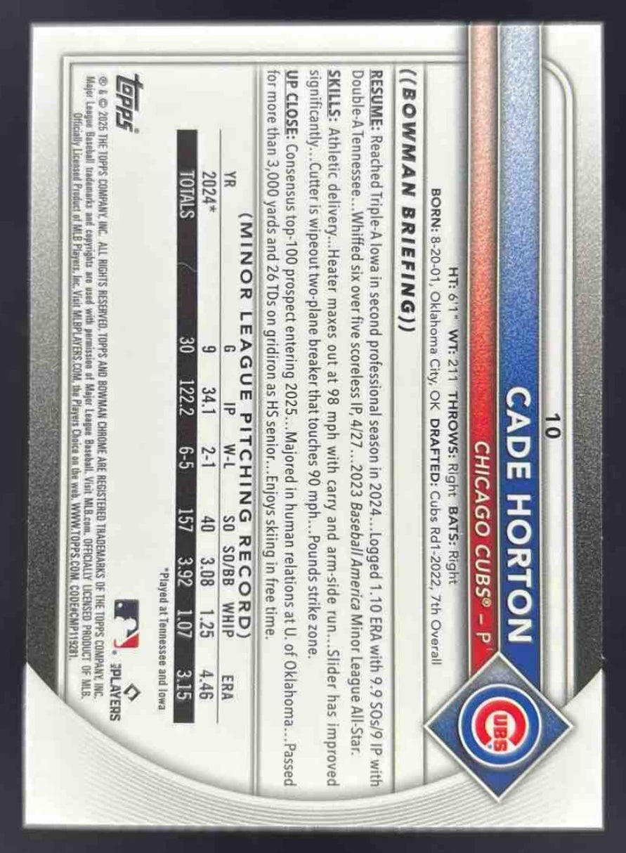 2025 Bowman Chrome Red RC Variation #10 Cade Horton RC