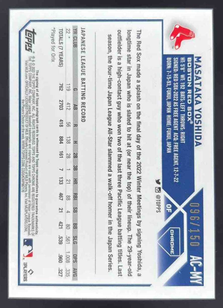 2023 Topps Chrome Update Blue Refractor #AC-MY Masataka Yoshida RC Auto /150