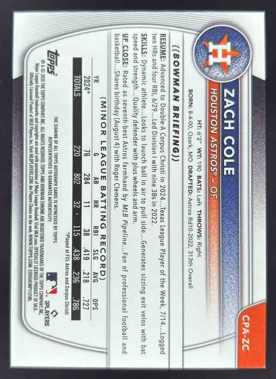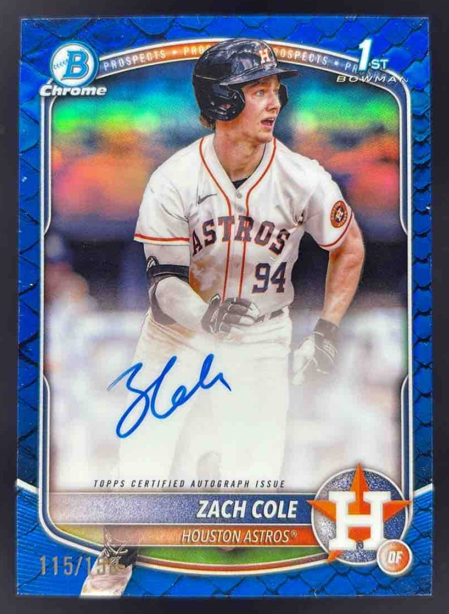2025 Bowman Chrome Autograph Reptilian Blue Refractor Zach Cole RC Auto /150