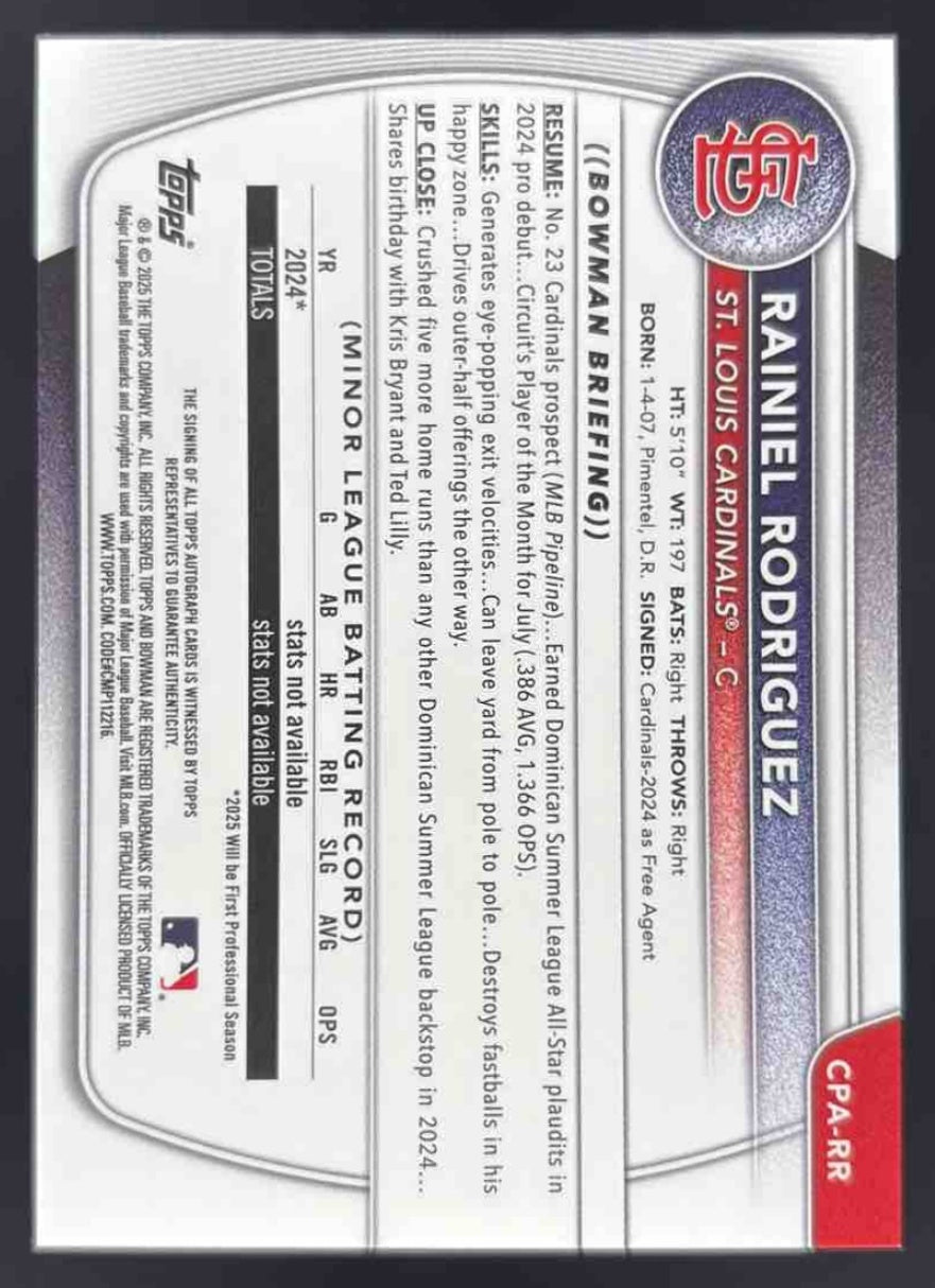 2025 Bowman Chrome Autograph #CPA-RR Rainiel Rodriguez RC Auto