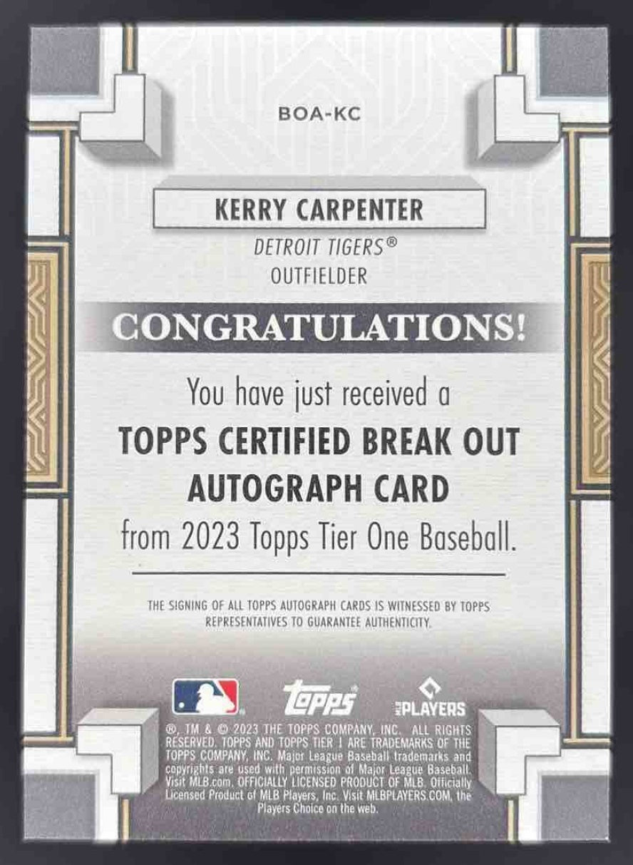 2023 Topps Tier One Break Out Autographs #BOA-KC Kerry Carpenter RC Auto /299