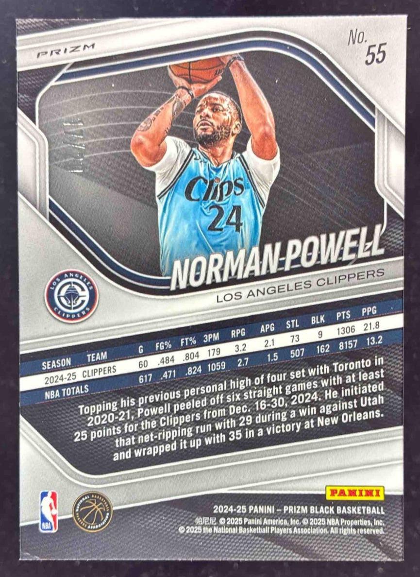 2024-25 Panini Prizm Black Cherry Blossom Prizms #55 Norman Powell /20