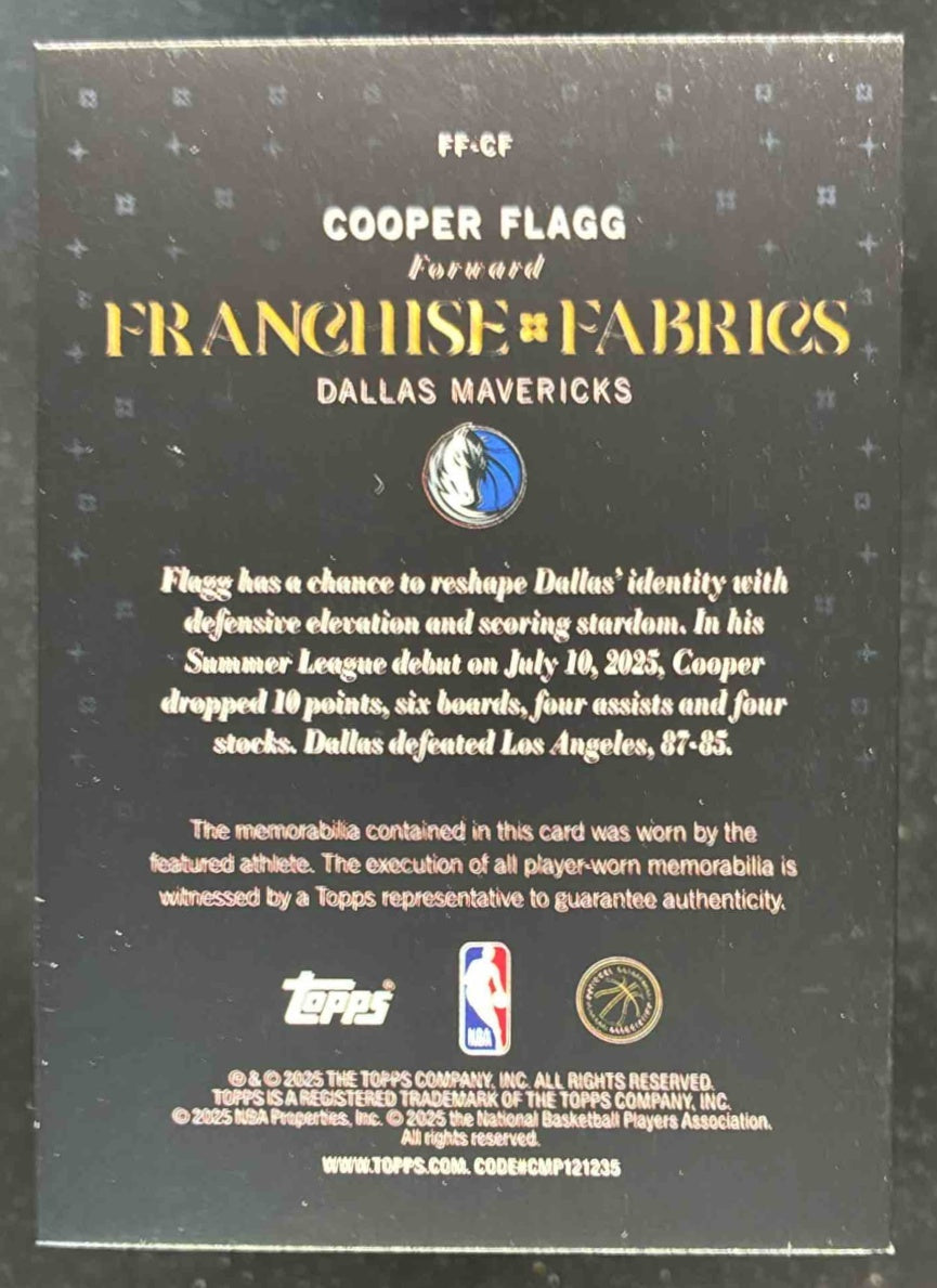 2025-26 Topps Franchise Fabrics #FF-CF Cooper Flagg RC