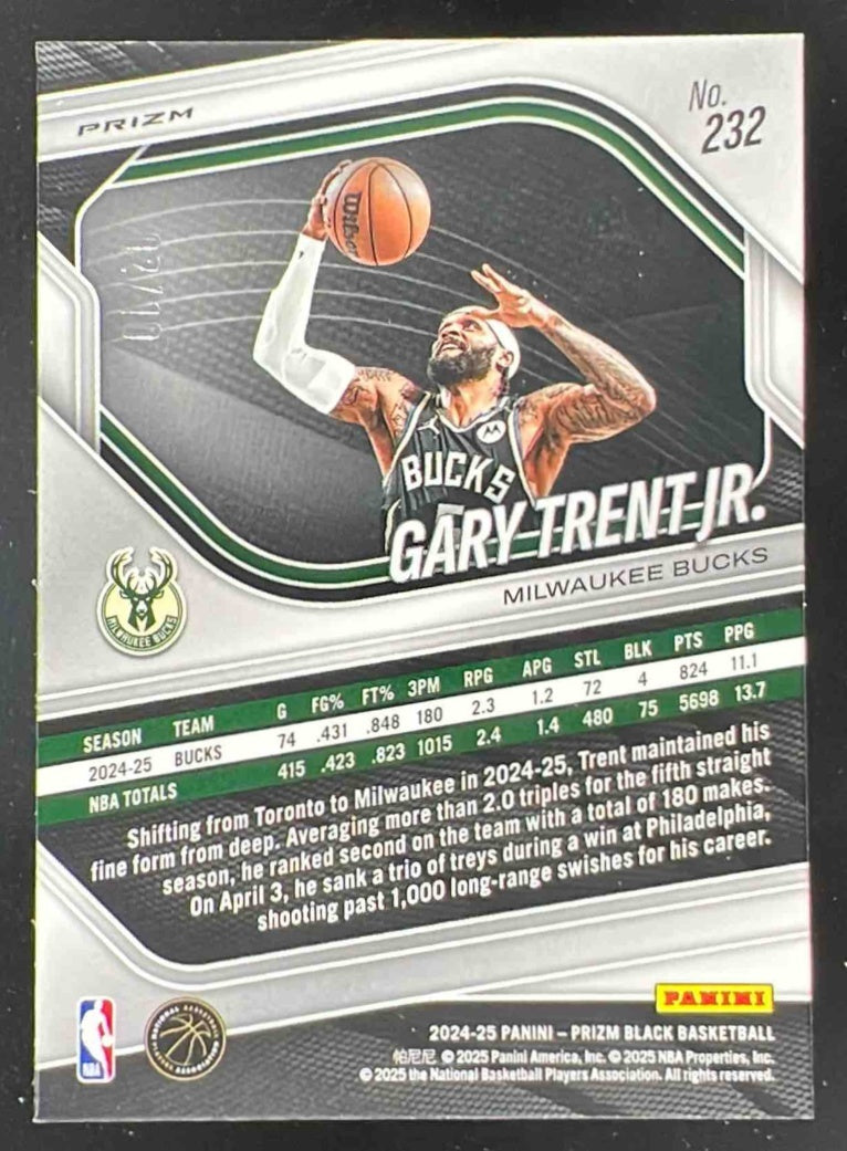 2024-25 Panini Prizm Black Gold Prizms #232 Gary Trent Jr. /10