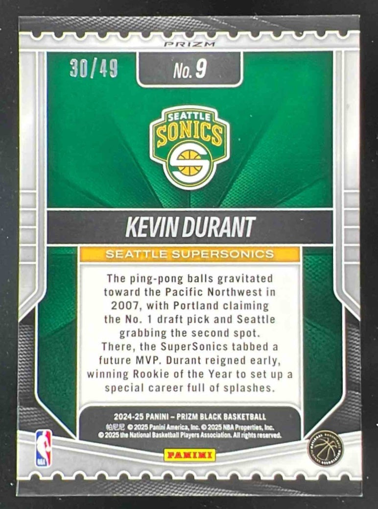 2024-25 Panini Prizm Black Luck of the Lottery Orange Prizms #9 Kevin Durant /49