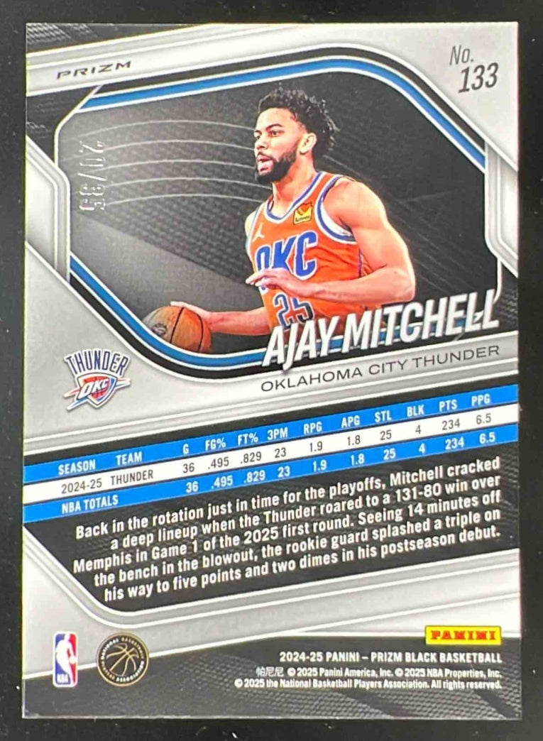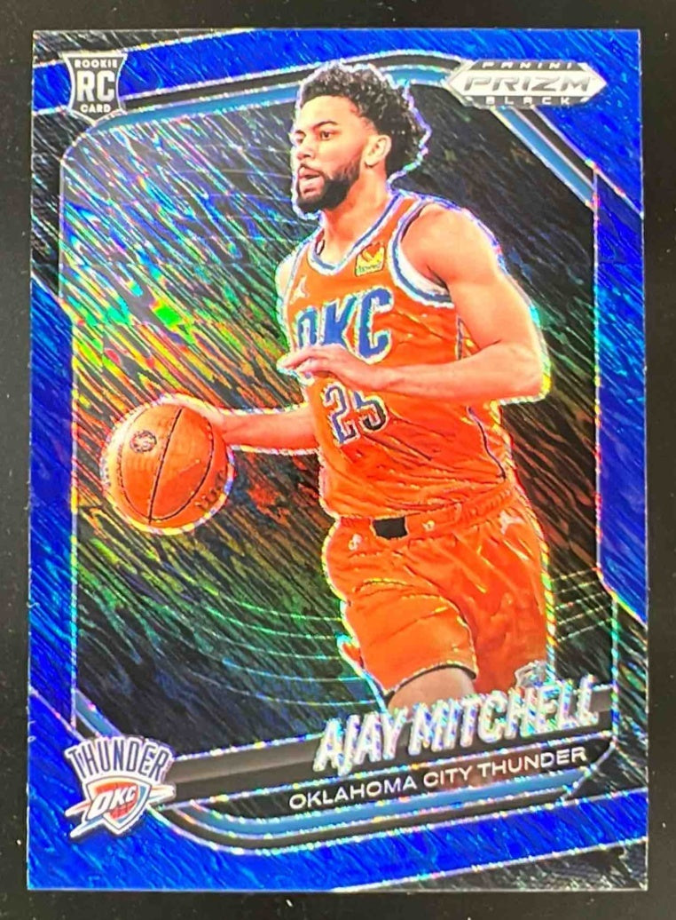 2024-25 Panini Prizm Black Blue Shimmer FOTL Prizms #133 Ajay Mitchell RC /35
