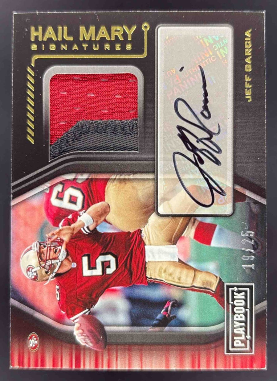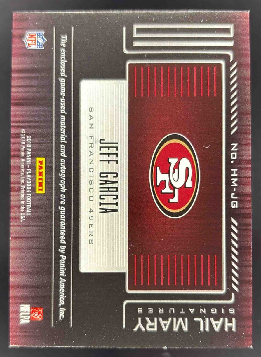 2018 Panini Playbook Hail Mary Signatures Relic Prime #HMJG Jeff Garcia Auto /25