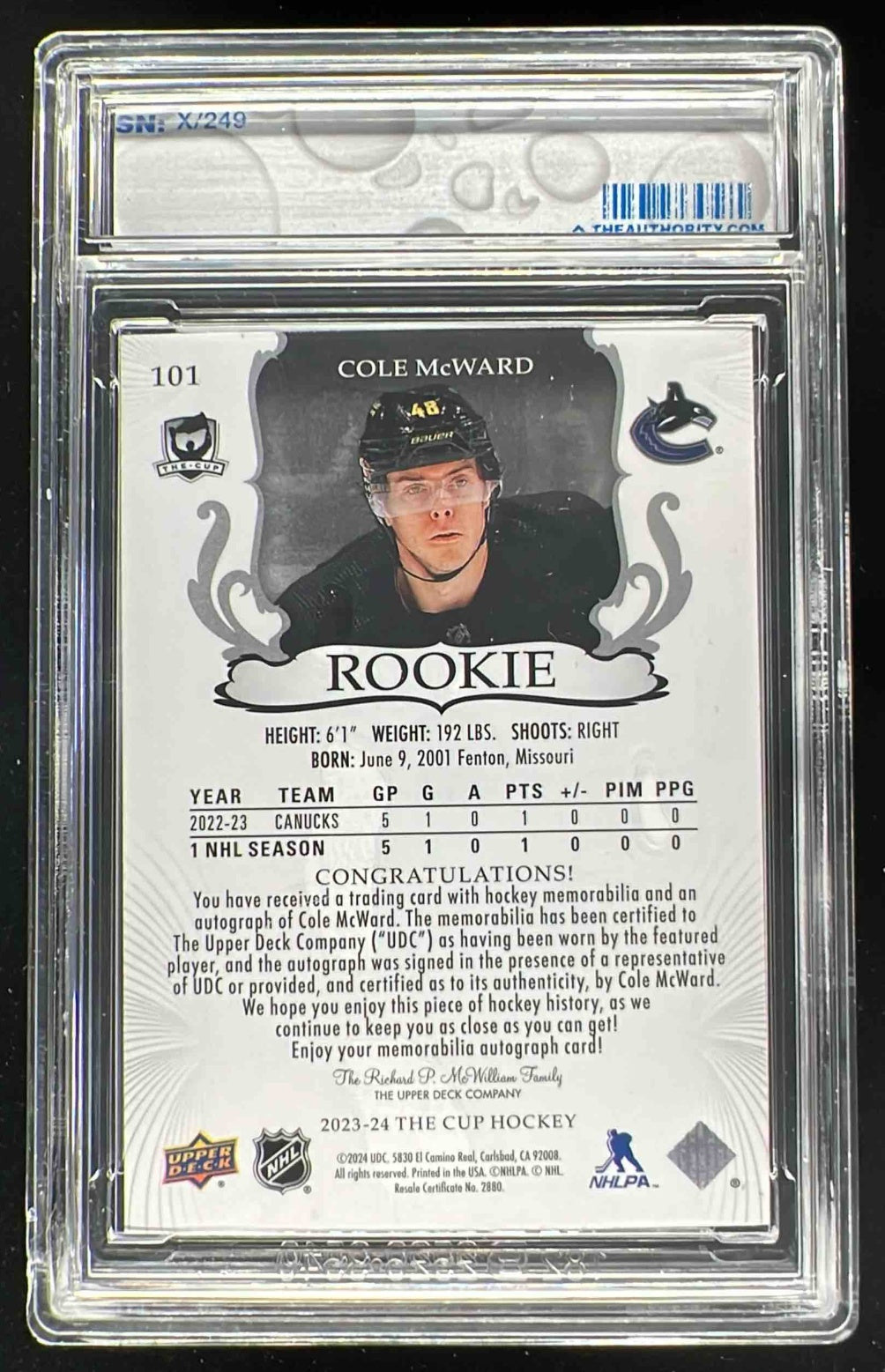 2023-24 The Cup #101 Cole McWard Rookie Patch Auto Autograph Auto /249
