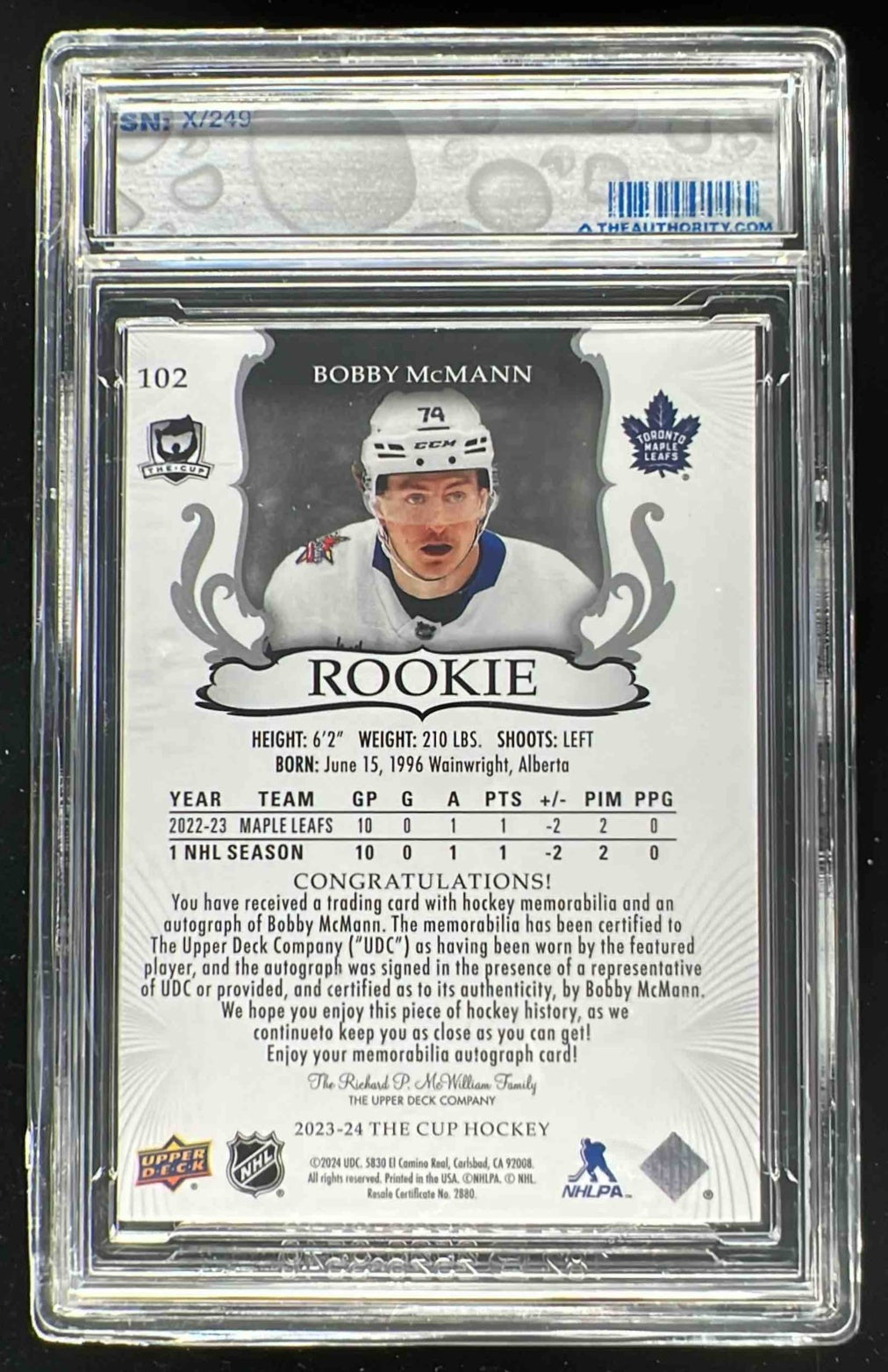 2023-24 The Cup #102 Bobby McMann Rookie Patch Auto Autograph Auto /249