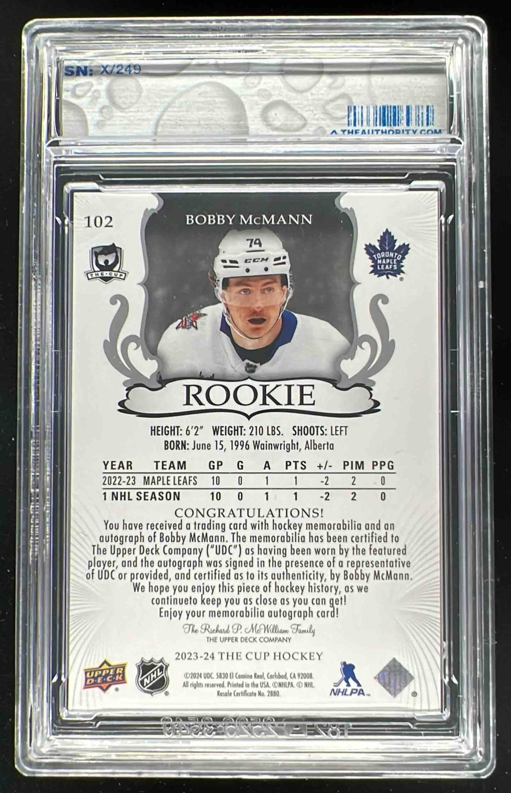 2023-24 The Cup #102 Bobby McMann Rookie Patch Auto Autograph Auto /249