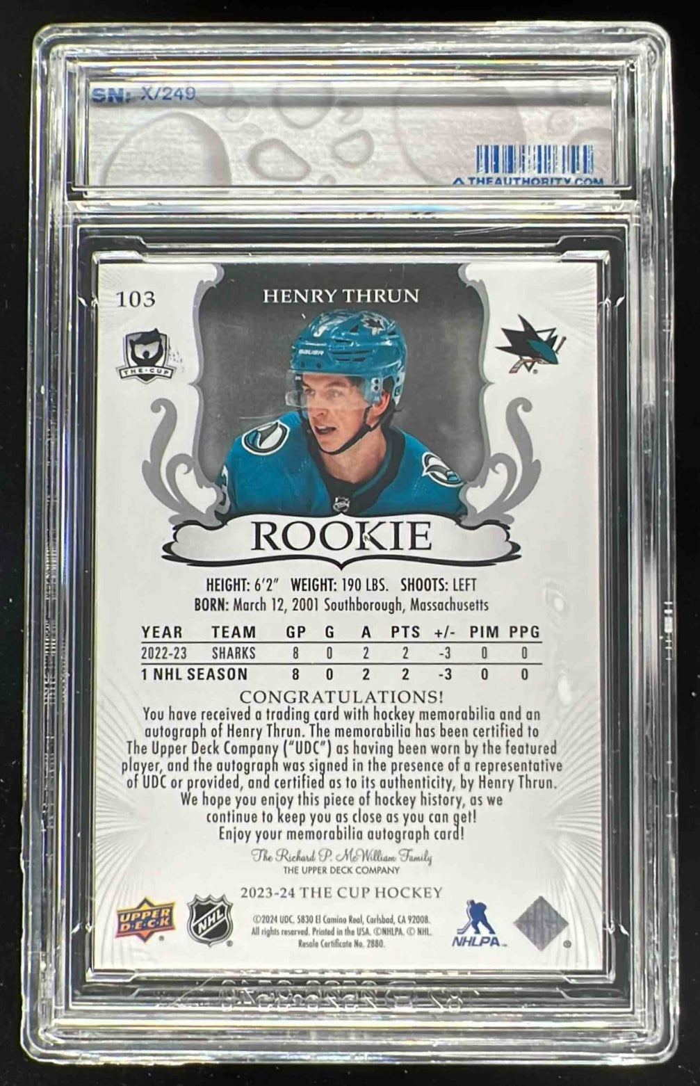 2023-24 The Cup #103 Henry Thrun Rookie Patch Auto Autograph Auto /249