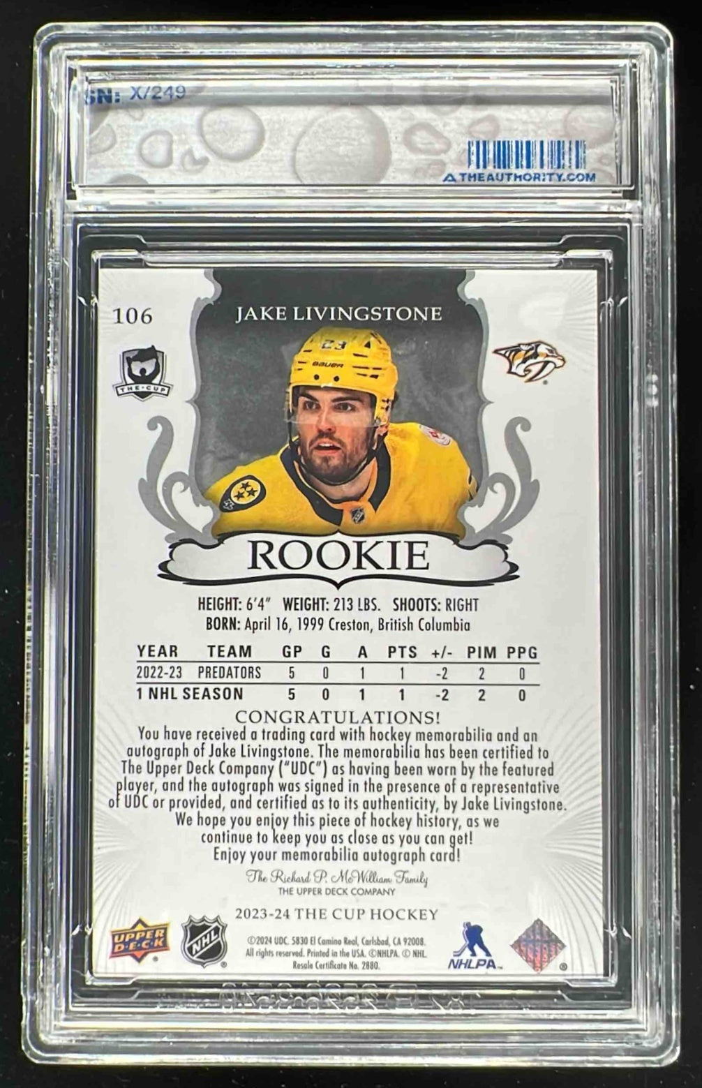 2023-24 The Cup #106 Jake Livingstone Rookie Patch Auto Autograph Auto /249
