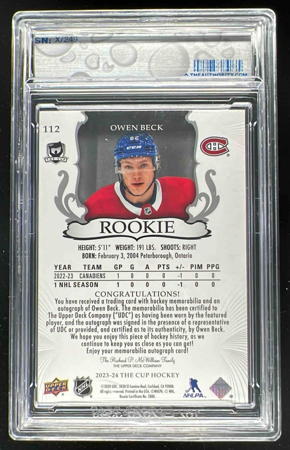 2023-24 The Cup #112 Owen Beck Rookie Patch Auto Autograph Auto /249