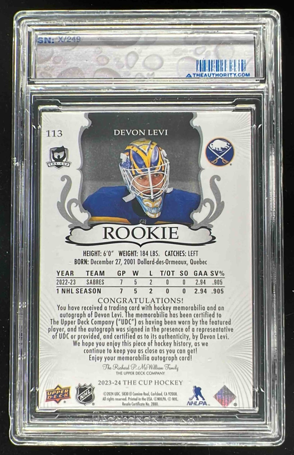 2023-24 The Cup #113 Devon Levi Rookie Patch Auto Autograph Auto /249