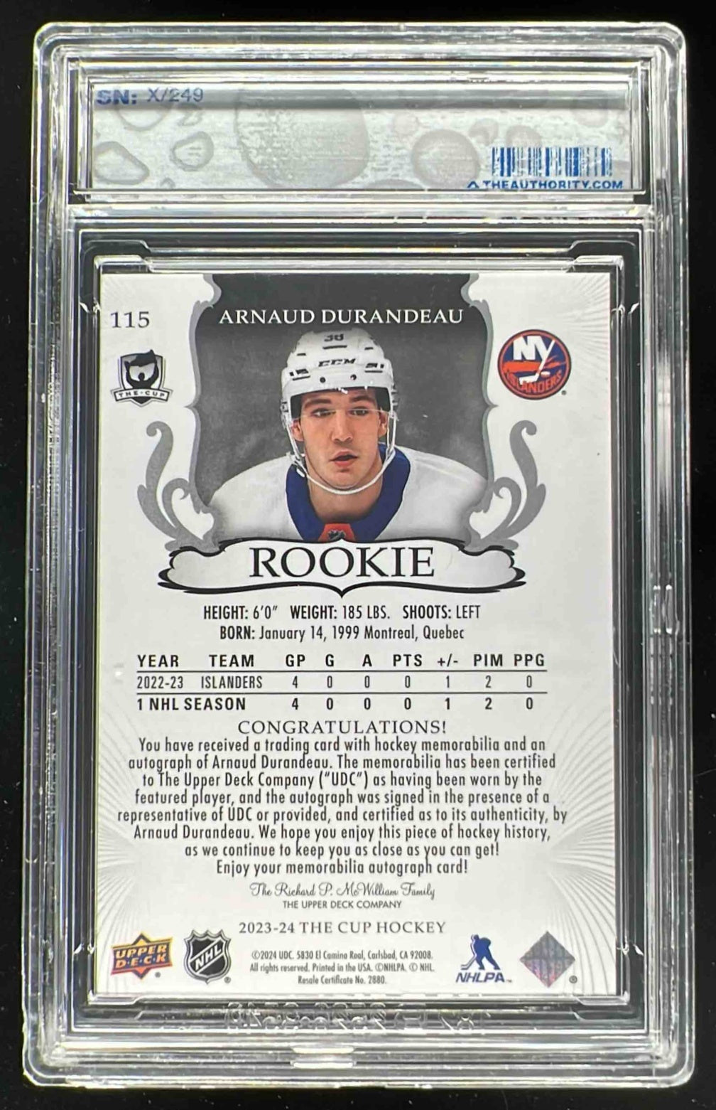 2023-24 The Cup #115 Arnaud Durandeau Rookie Patch Auto Autograph Auto /249