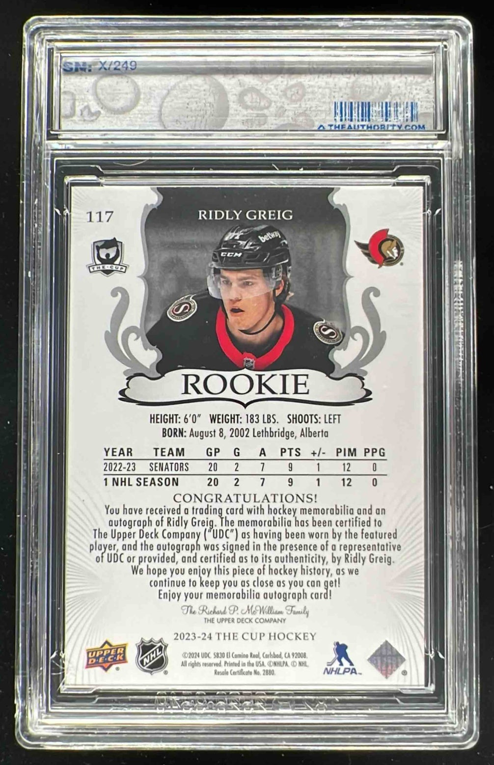 2023-24 The Cup #117 Ridly Greig Rookie Patch Auto Autograph Auto /249