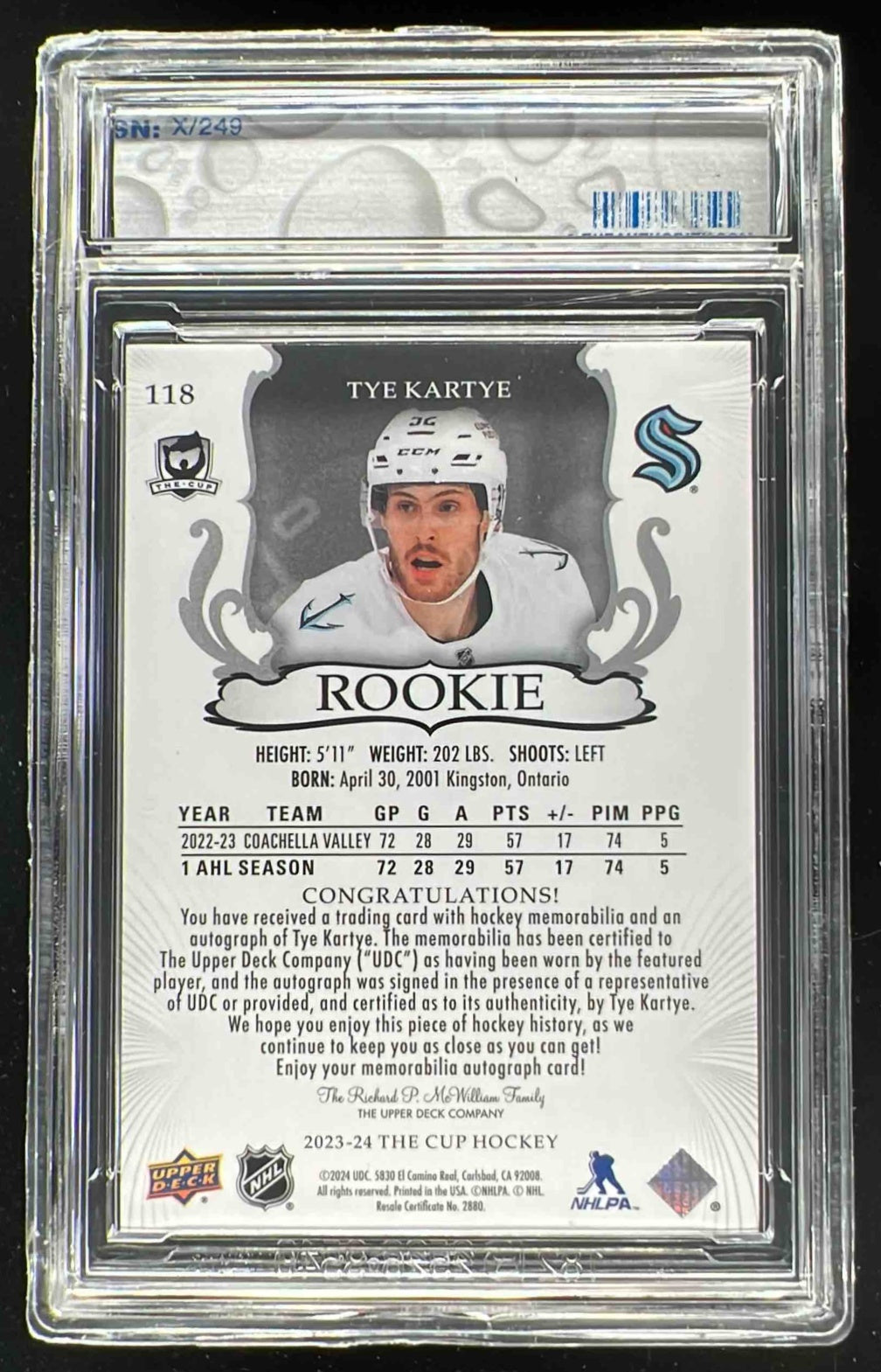 2023-24 The Cup #118 Tye Kartye Rookie Patch Auto Autograph Auto /249